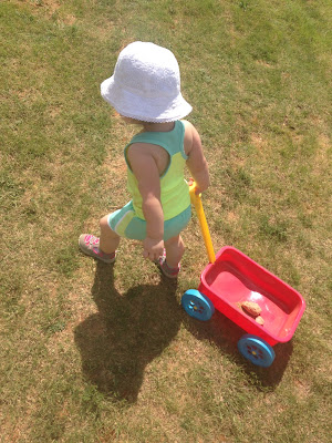 I don't know who this wagon belongs too, but I see us buying one very soon. She toted that thing all over camp. Filling it with rocks and other treasures.